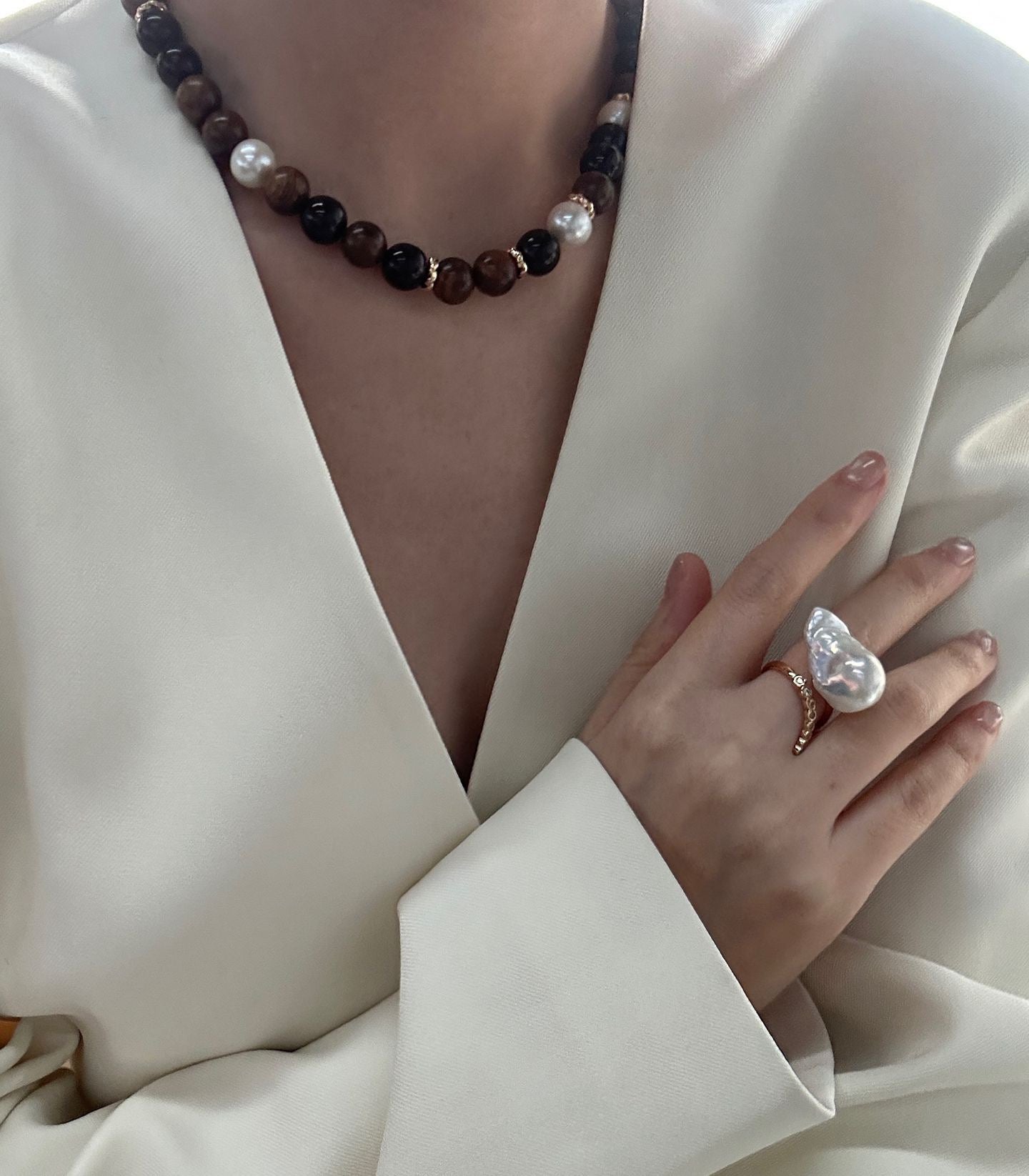 Chain Length: 17.32" (44.0cm), Material: SilverGold Plated18KMetalCopperGold PlatedRed SandalwoodRosewoodPearlEdison